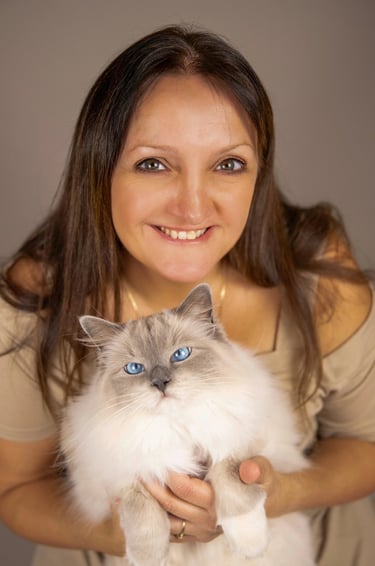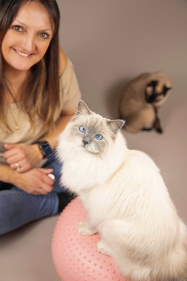 Auch privat sind Tiere ein fester Bestandteil meines Lebens. Aktuell begleiten mich zwei Katzen – Dayla, eine Thai-Katze aus der Cattery "Viosna*pl", und Raya, eine Ragdoll, aus der Zucht "My Graceful Giants", sowie zwei große Hunde: Barclay, ein Malinois, und Rocket, ein AmStaff.